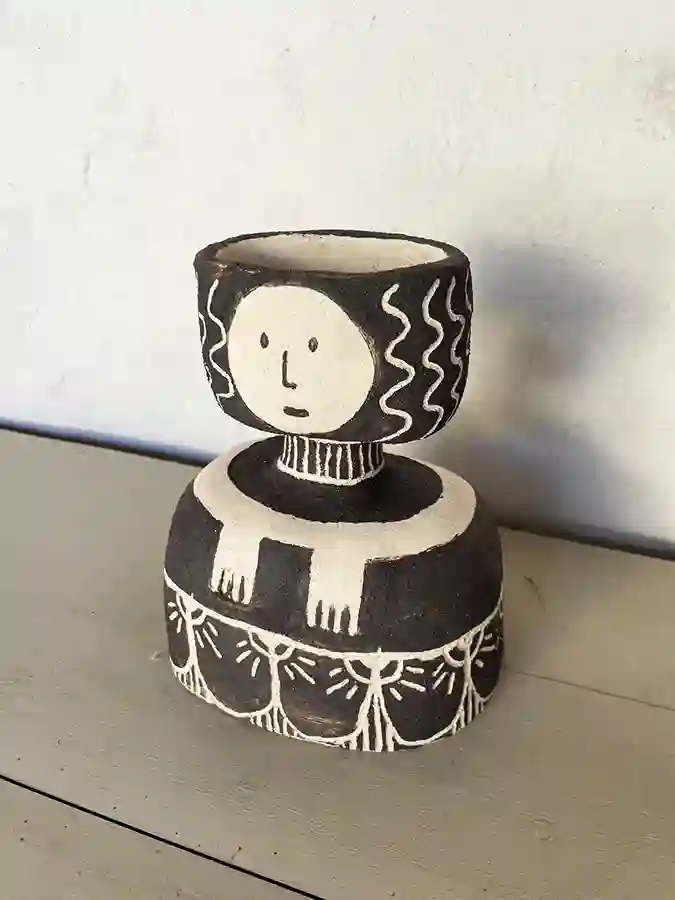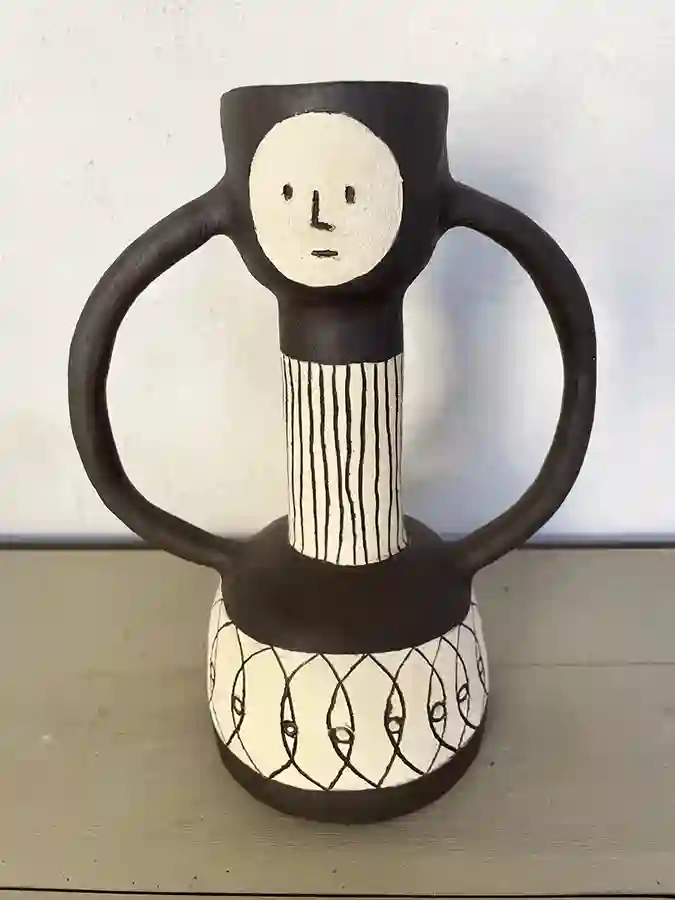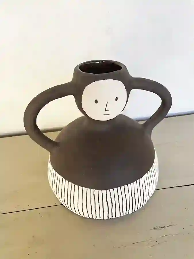 Faïence noire Hauteur 20 cm, diamètre : 25 cm.
