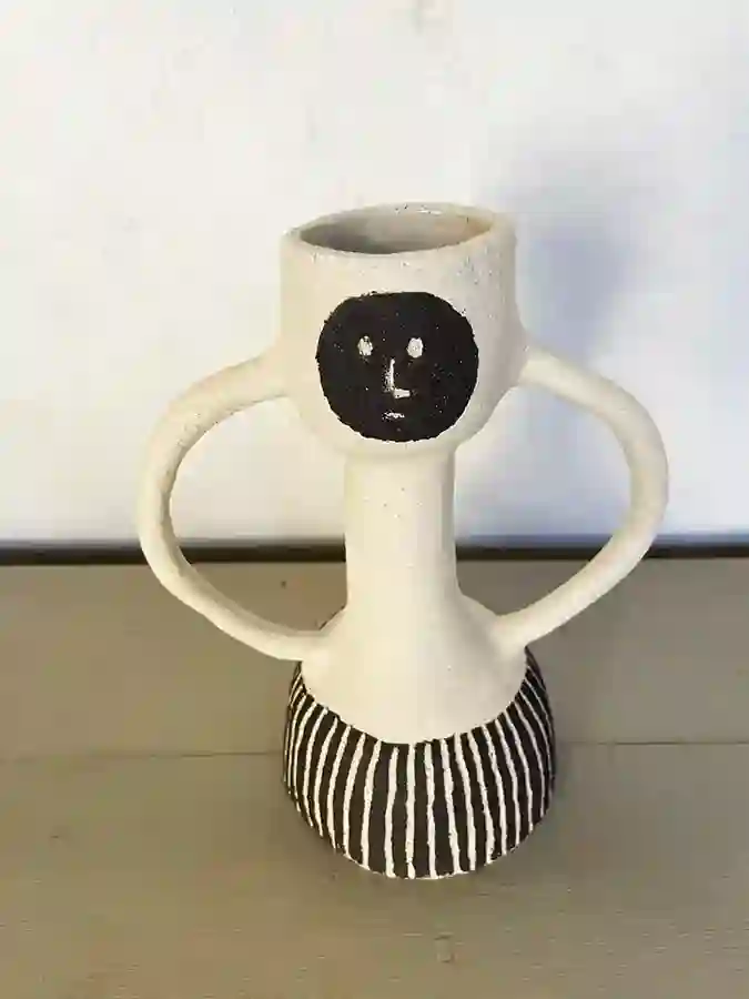 Faïence noire Hauteur 33 cm, diamètre : 15,5 cm.
